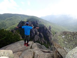 巨岩と倒木 山頂までは、巨大なジャングルジムと